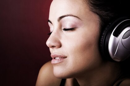 Portrait d'une jeune fille dans un casque en studioPortrait d'une jeune fille dans un casque en Studio
