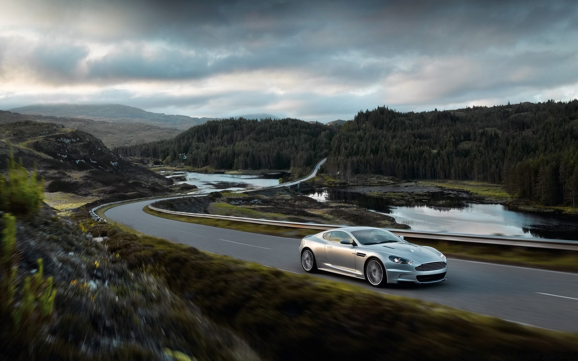 La voiture roule sur une route de montagne