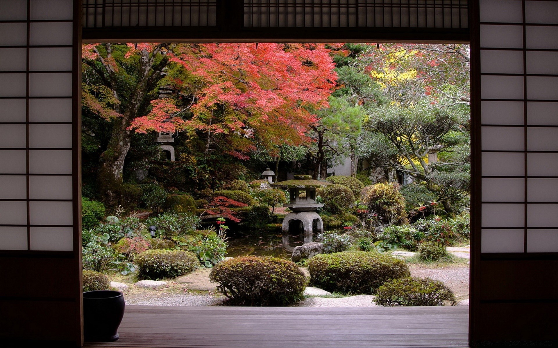 Vue sur le jardin asiatique vert