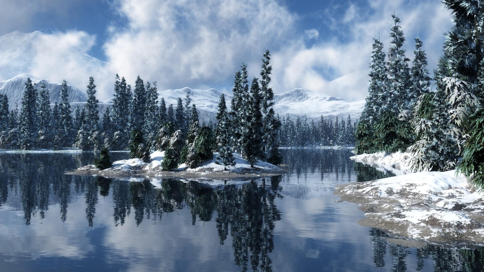 Coucher de soleil tranquille près de l'épinette puissante sur le rivage