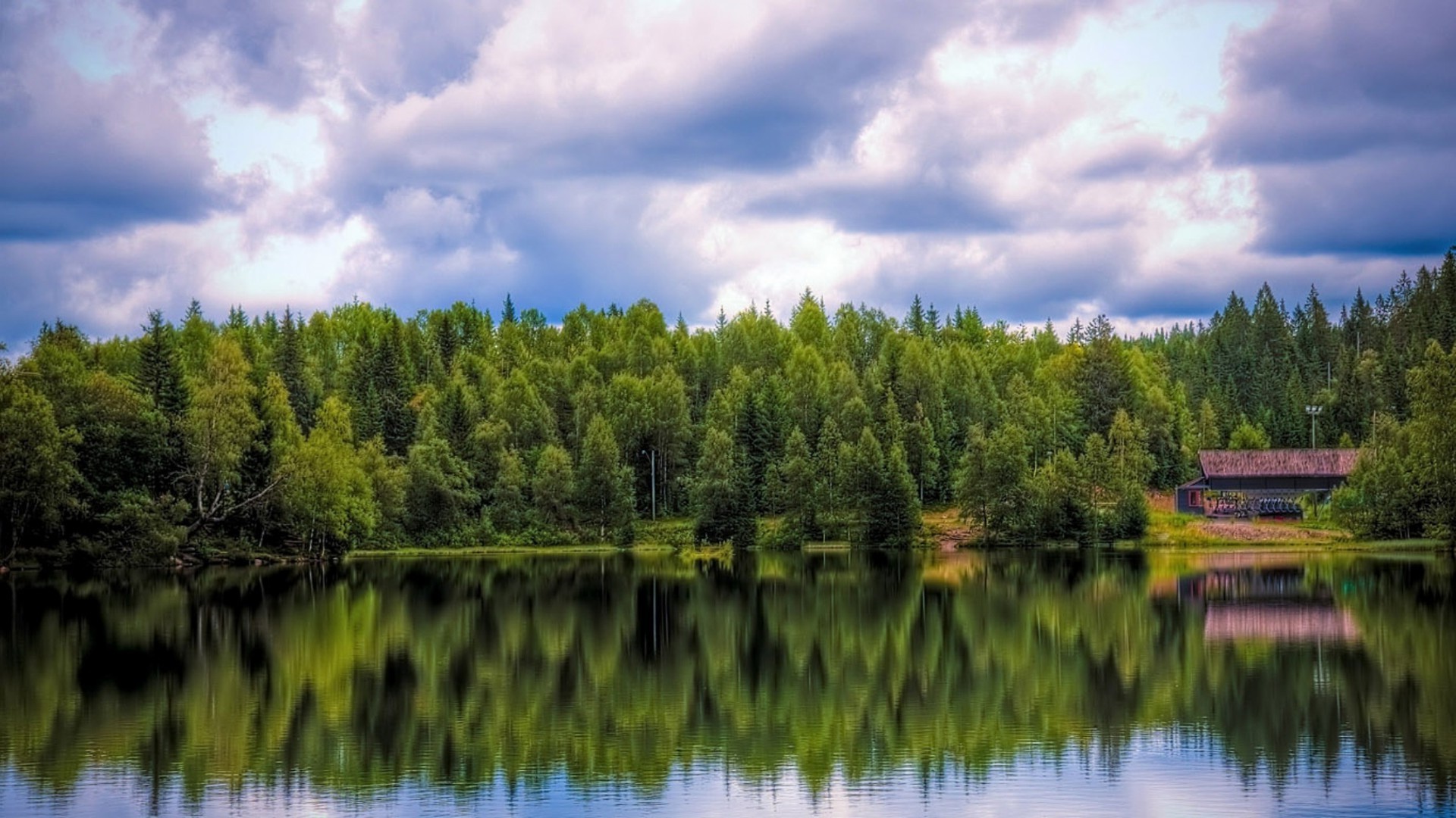 Économiseur d'écran sur le bureau arbres reflétés dans le lac