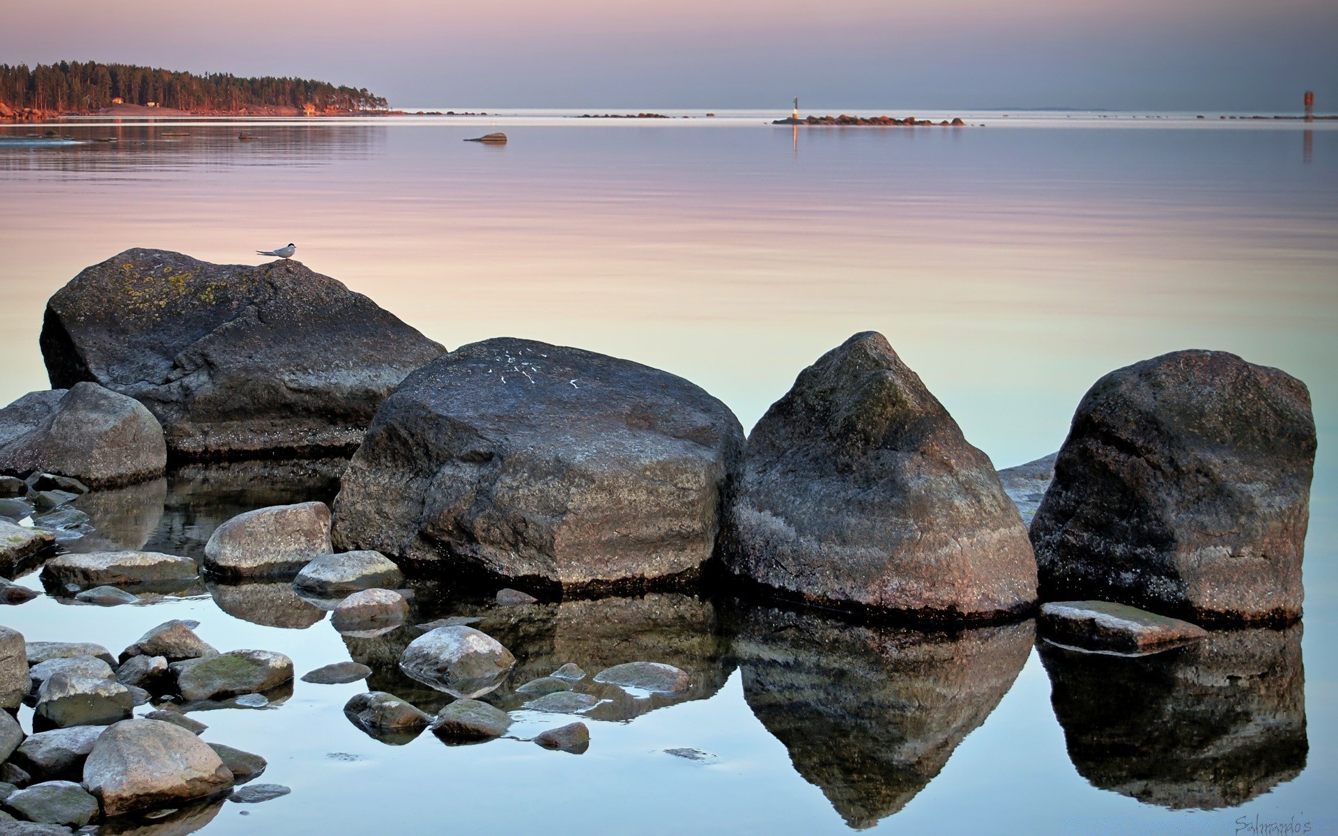 Paysage qui représente le coucher de soleil, la plage et les vagues