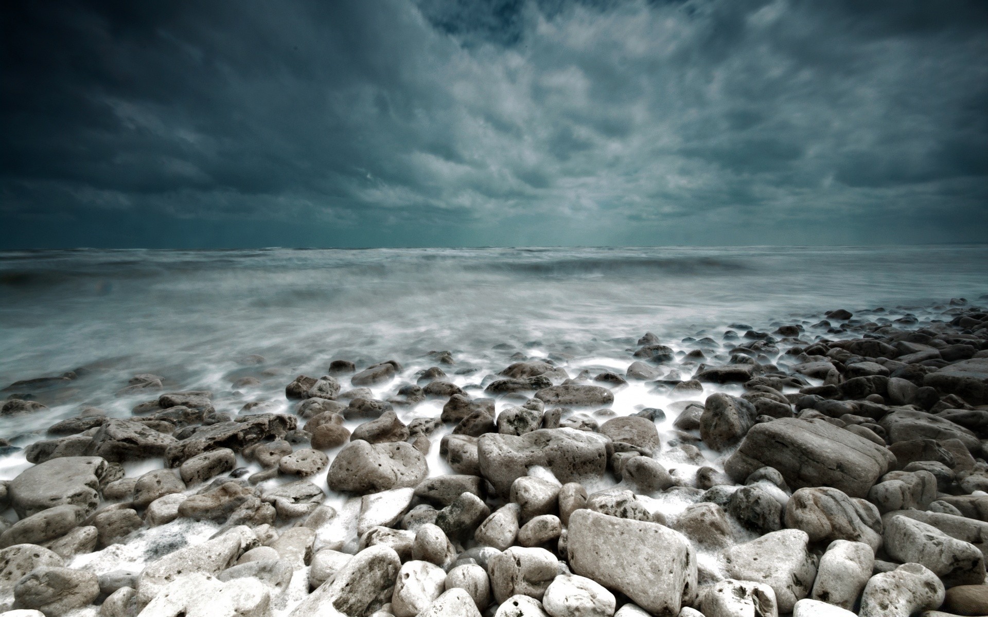Eau rivière pierres dans l'eau ciel plage