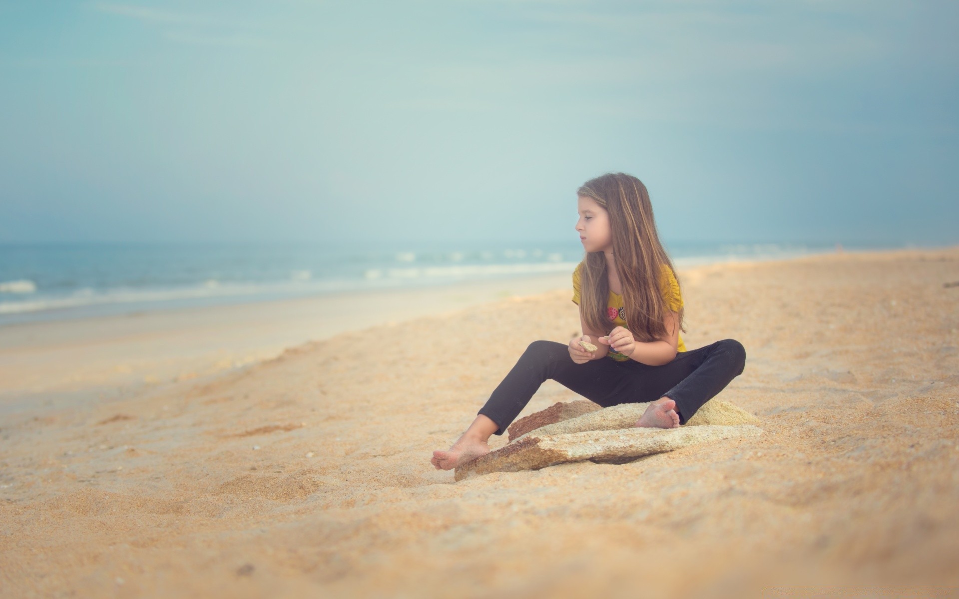 Bonheur tranquille sur la plage de la mer