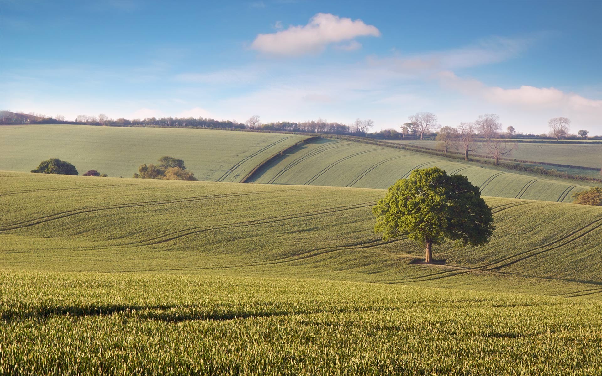Arbres en forme de boule sur les champs verts