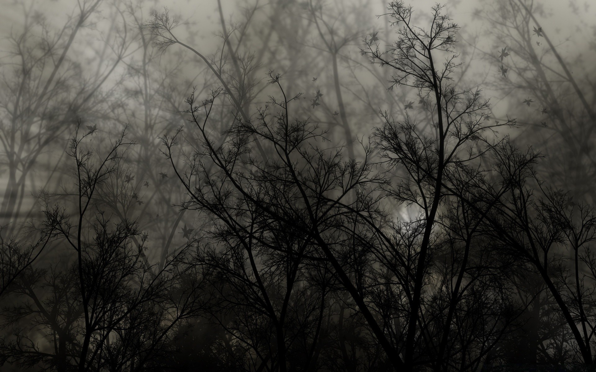 Les arbres d'automne dans le paysage transformé, leur silhouette l'air lui-même décrit