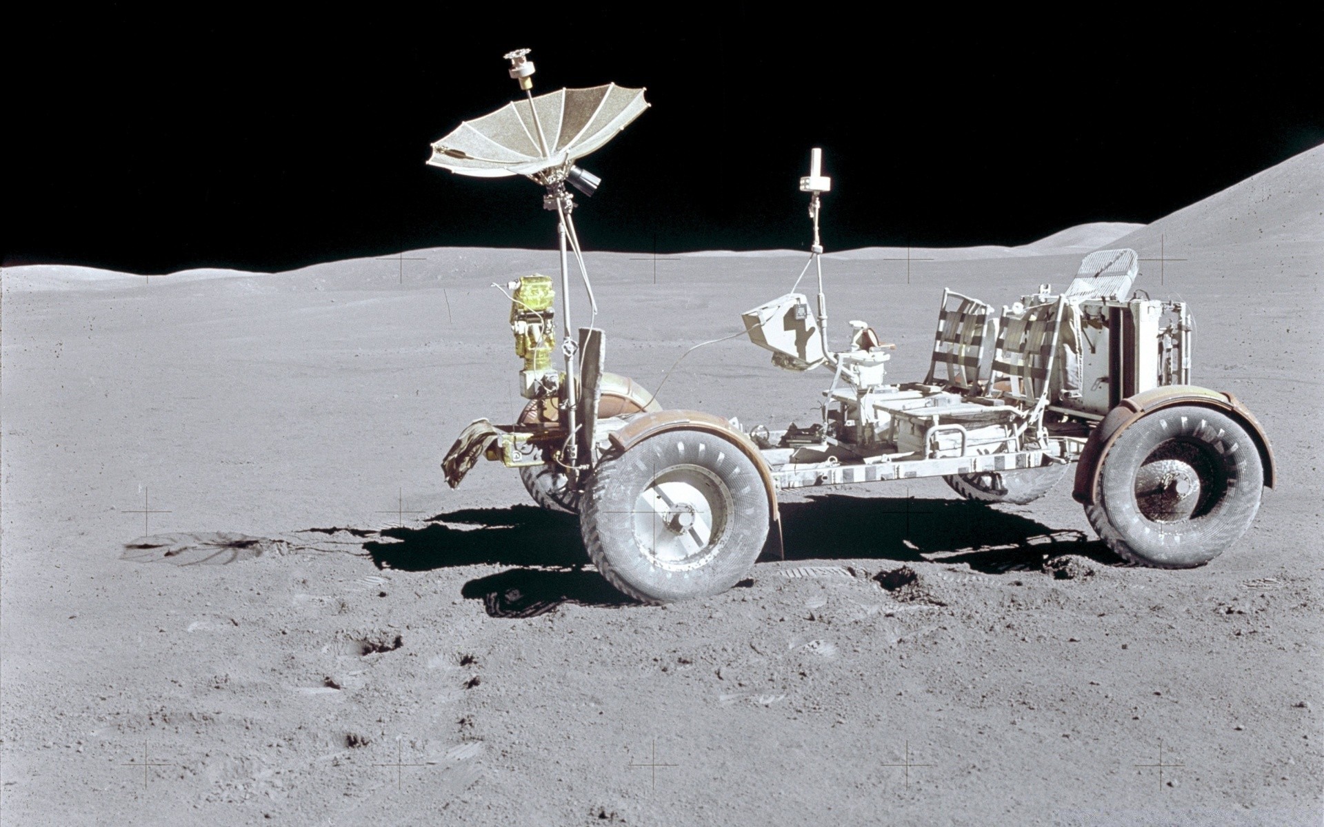Lunokhod sur la lune sur le fond de l'espace noir