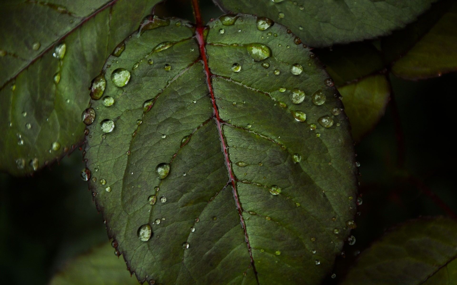 Rosée sur les feuilles de croissance après la pluie tombéeRosée sur les feuilles de croissance après la pluie tombée