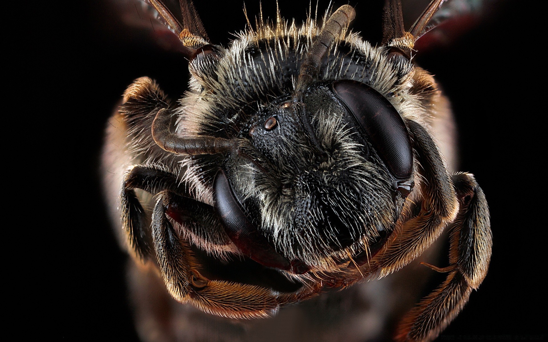 Gros plan d'un insecte avec des yeux énormes et un Taureau moelleux