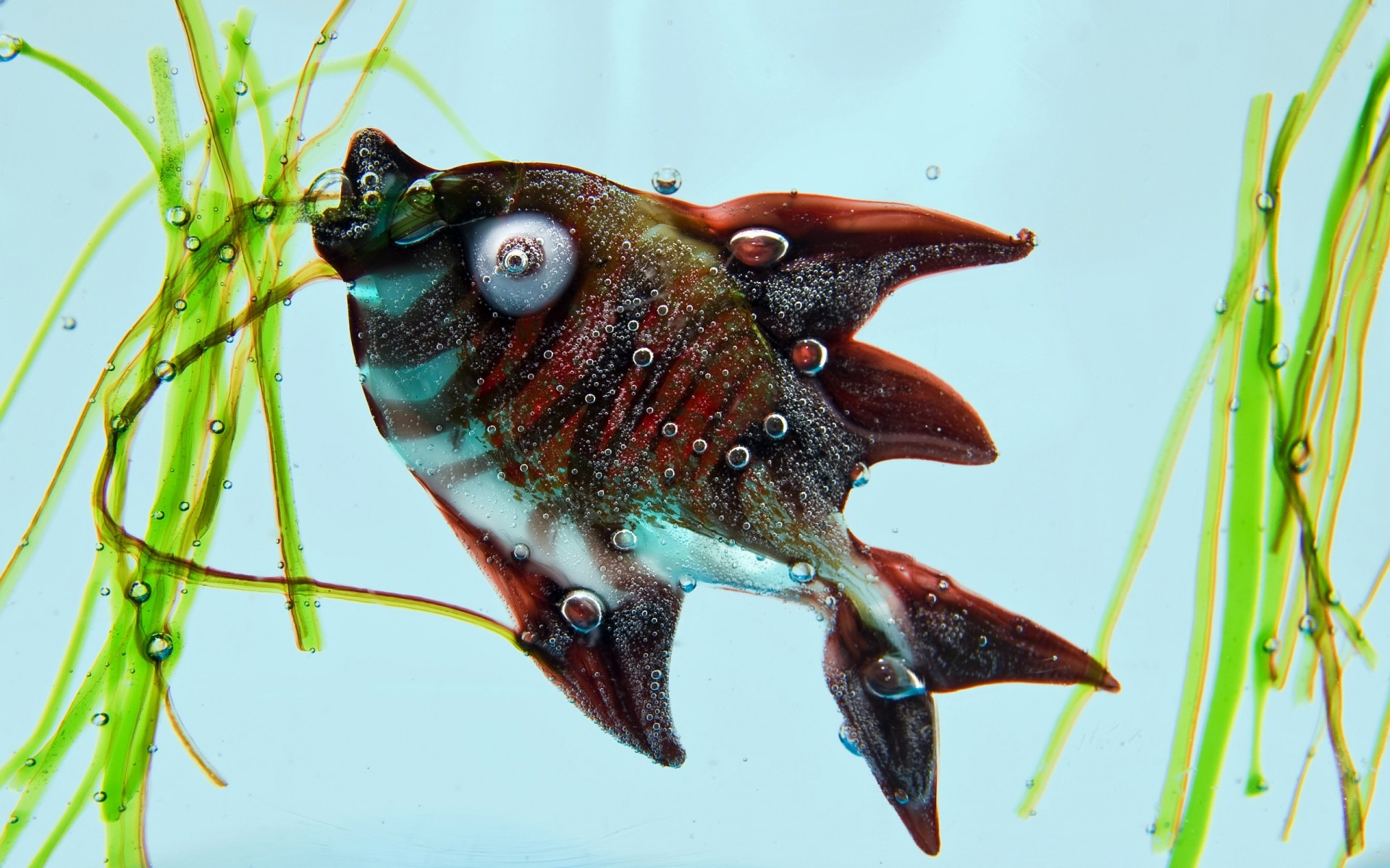 Couleur jaune et gris en forme de poisson sur fond Bordeaux