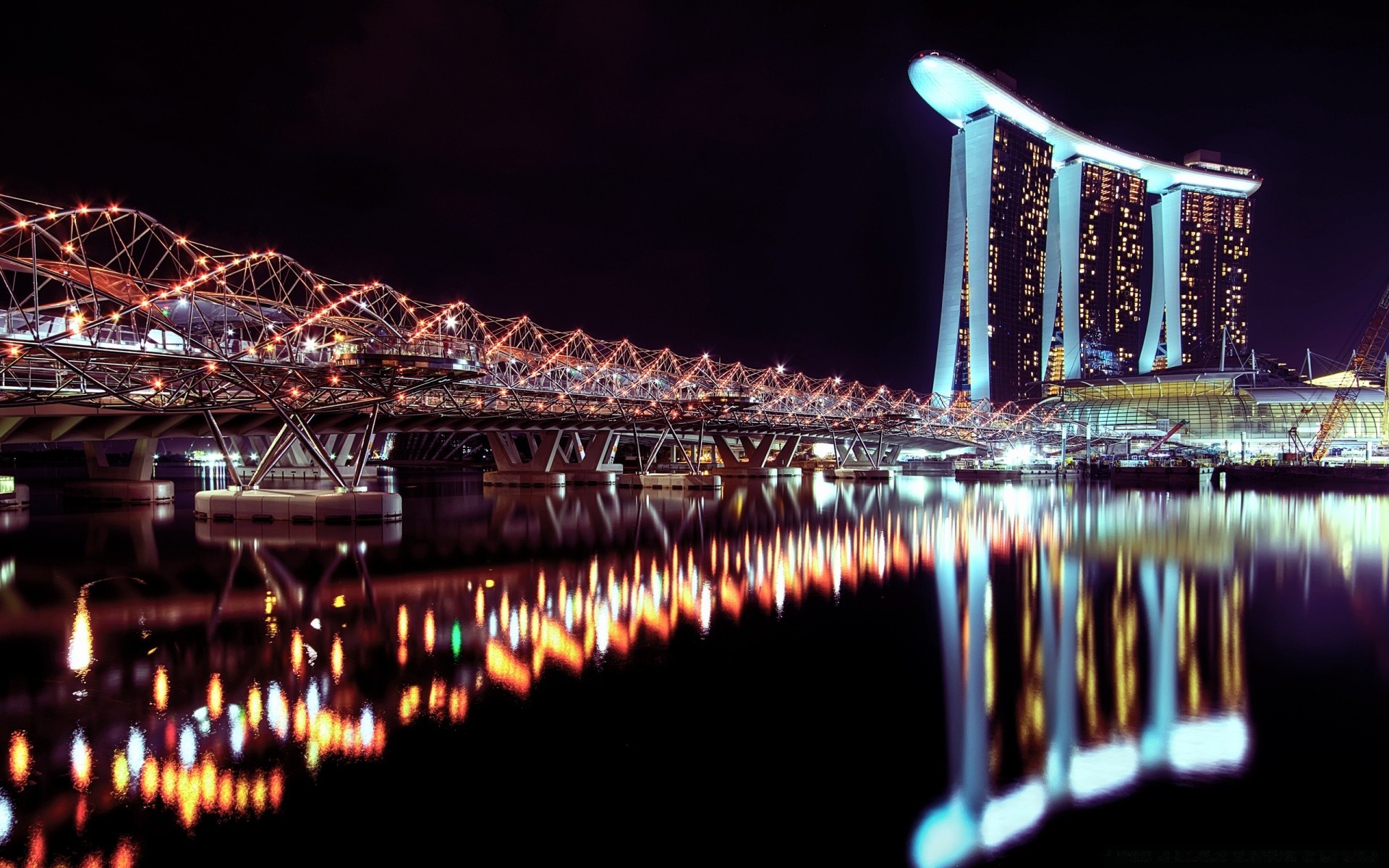 Belle vue sur la ville européenne. Pont illuminé au-dessus de la rivière