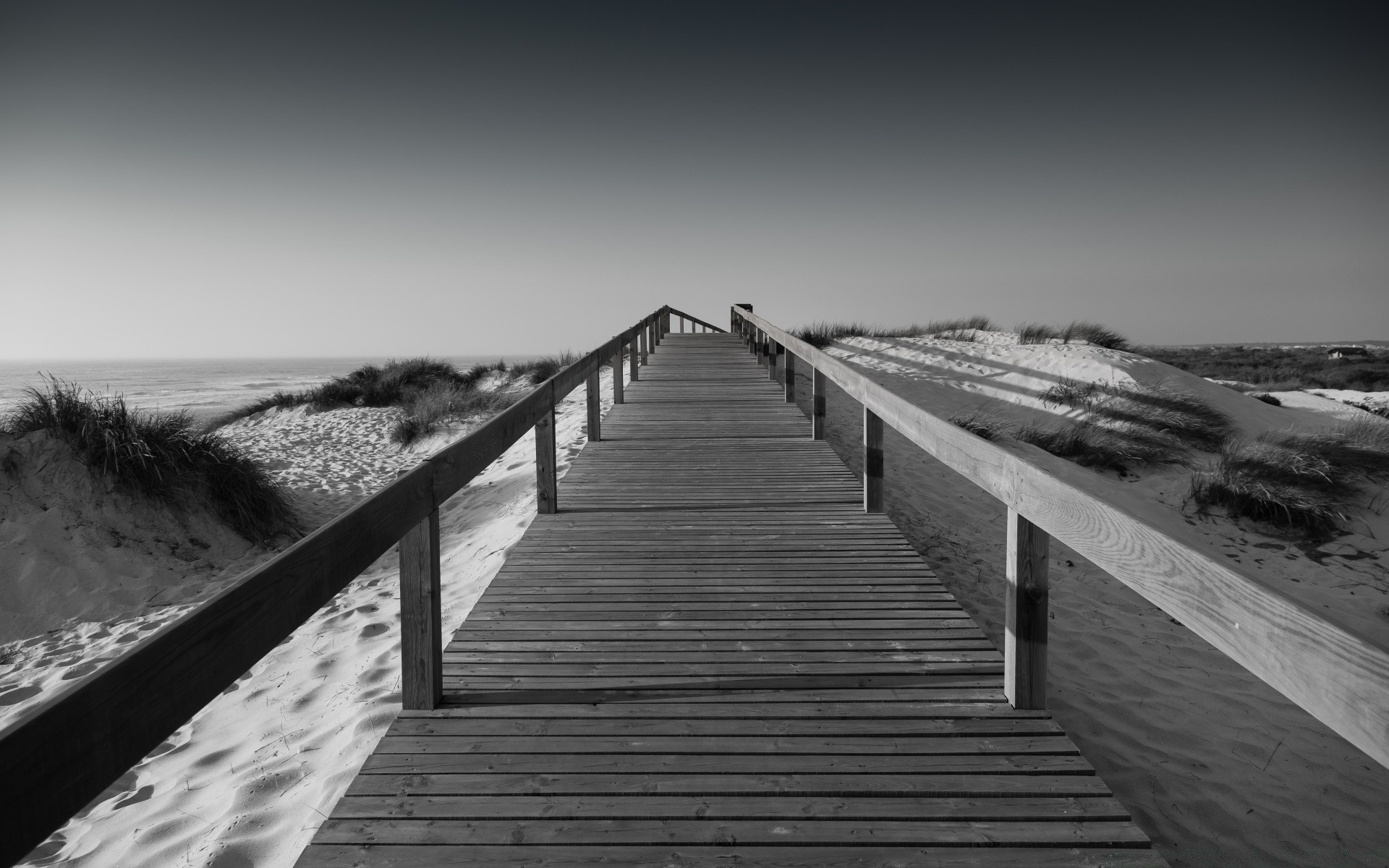 Pont en Amérique coupant l'eau sur fond de coucher de soleil