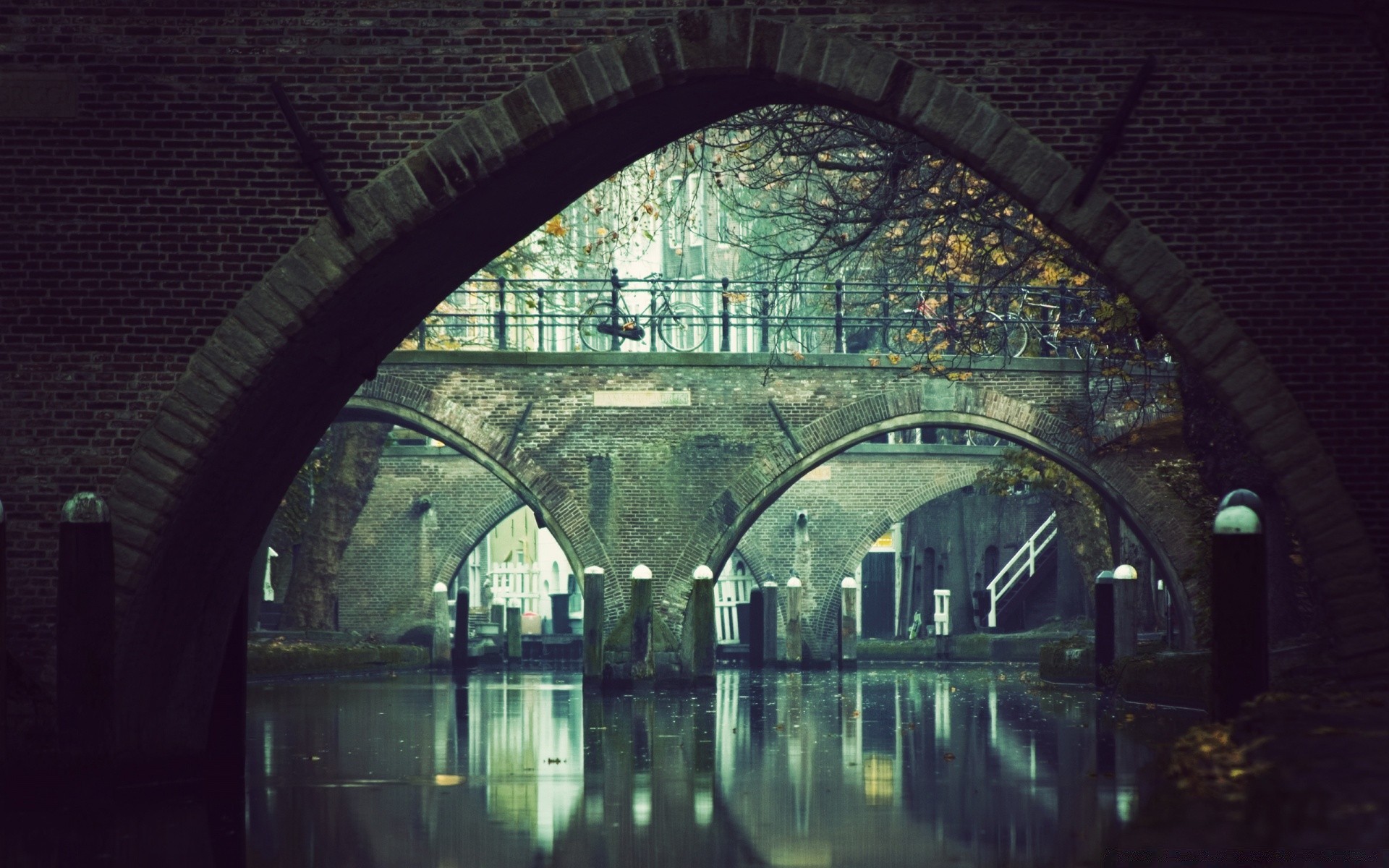 Photo noir et blanc d'un pont coucher de soleil avec des lanternes