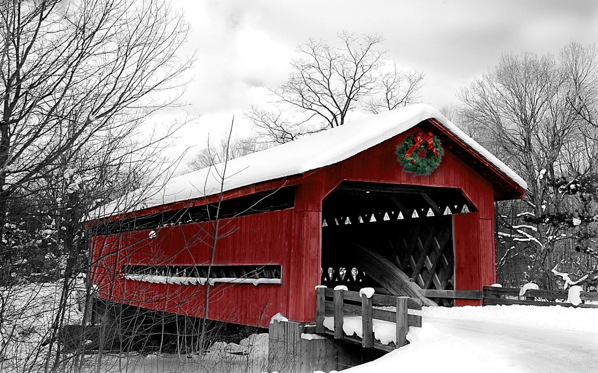 Les piliers du pont sont éclairés par des lanternes. Nuit noire