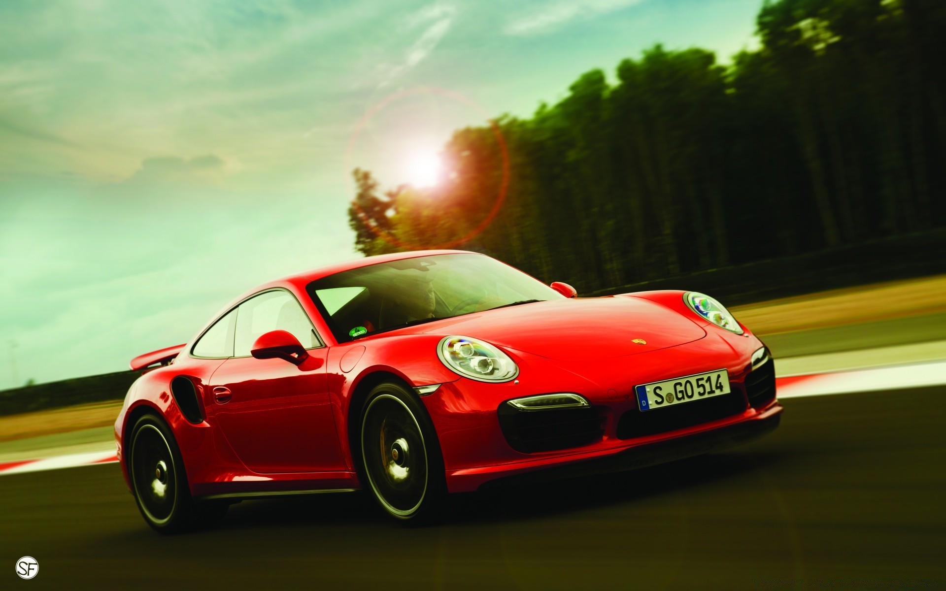 Porsche dorée avec réflexion sur le capot du bâtiment