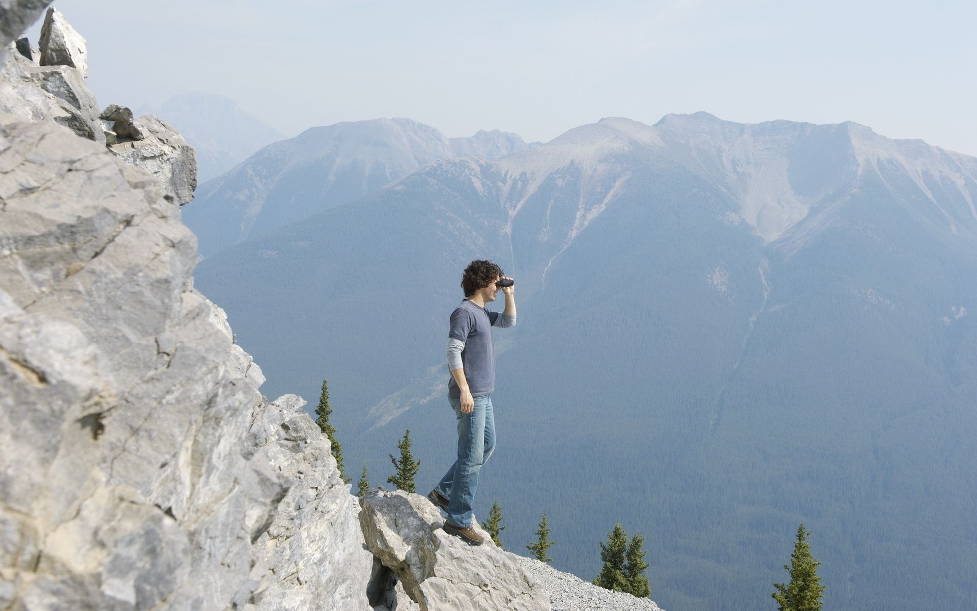 Une ville post-apocalyptique et un homme avec un arc derrière son dos