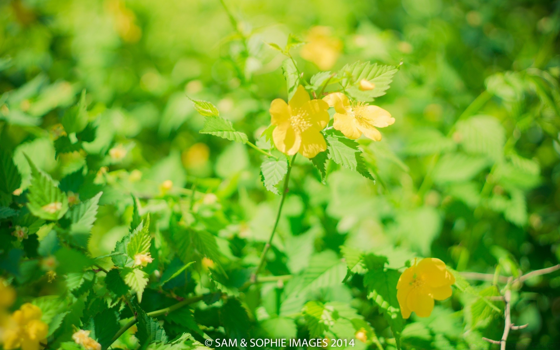 Fleurs jaunes sur fond de feuilles vertes