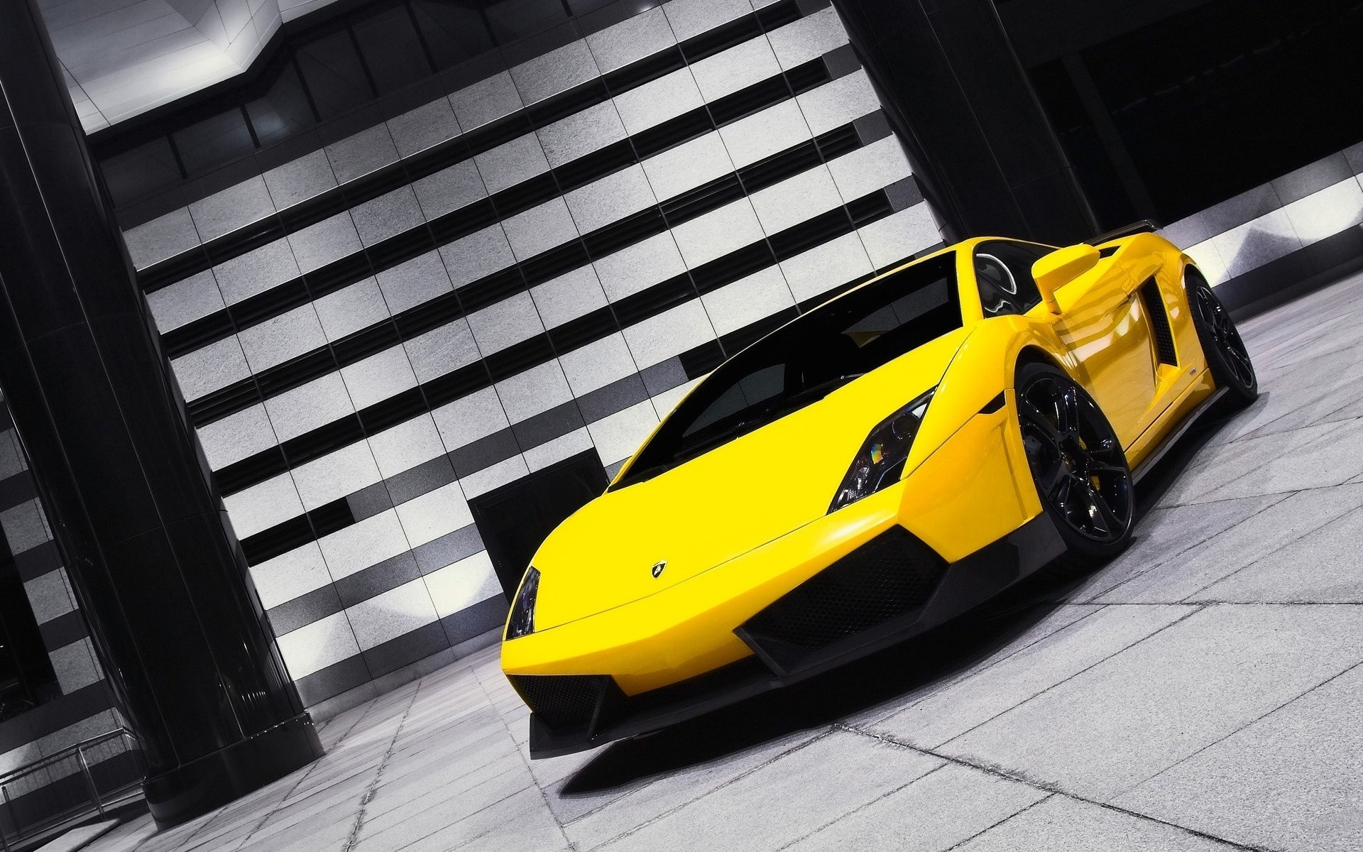 Une lamborghini jaune se dresse sur la route