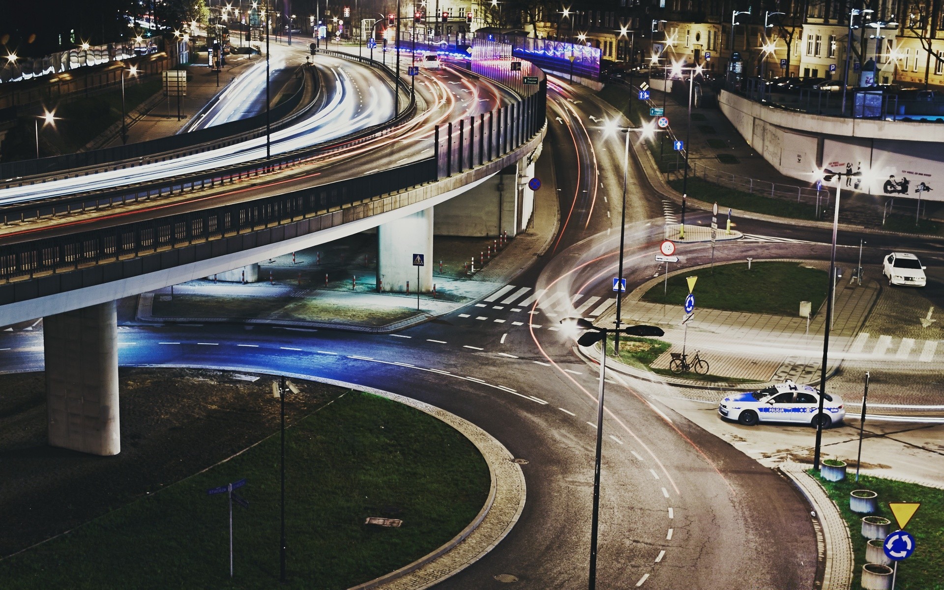 Une voiture Ferrari se précipitant sur l'autoroute le long d'une rangée de cyprès