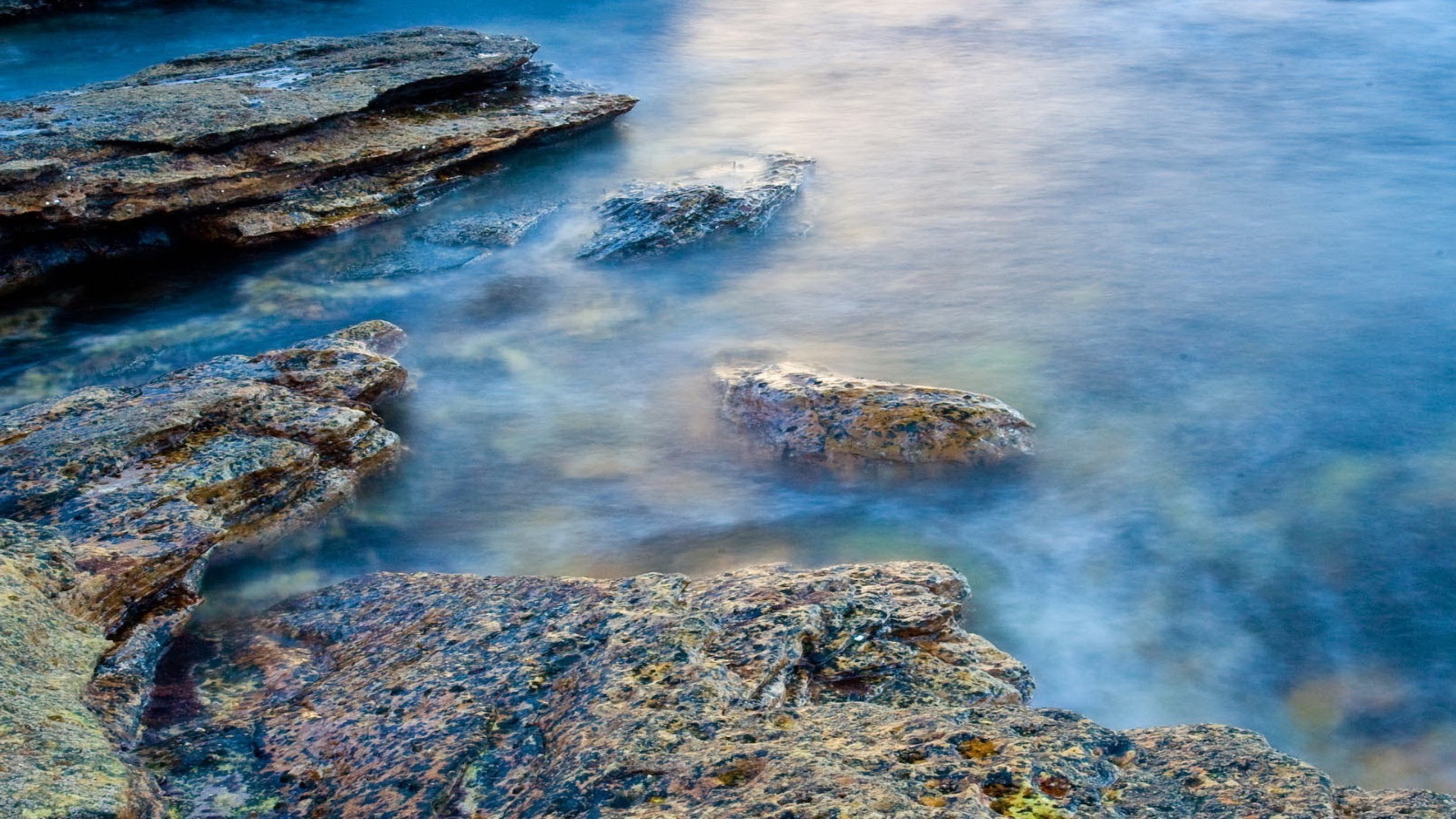 La mer lave les pierres sur le rivage