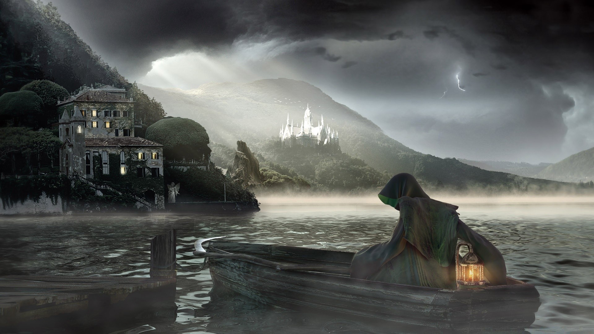 Illustration d'un guerrier avec des armes contre un animal mystérieux