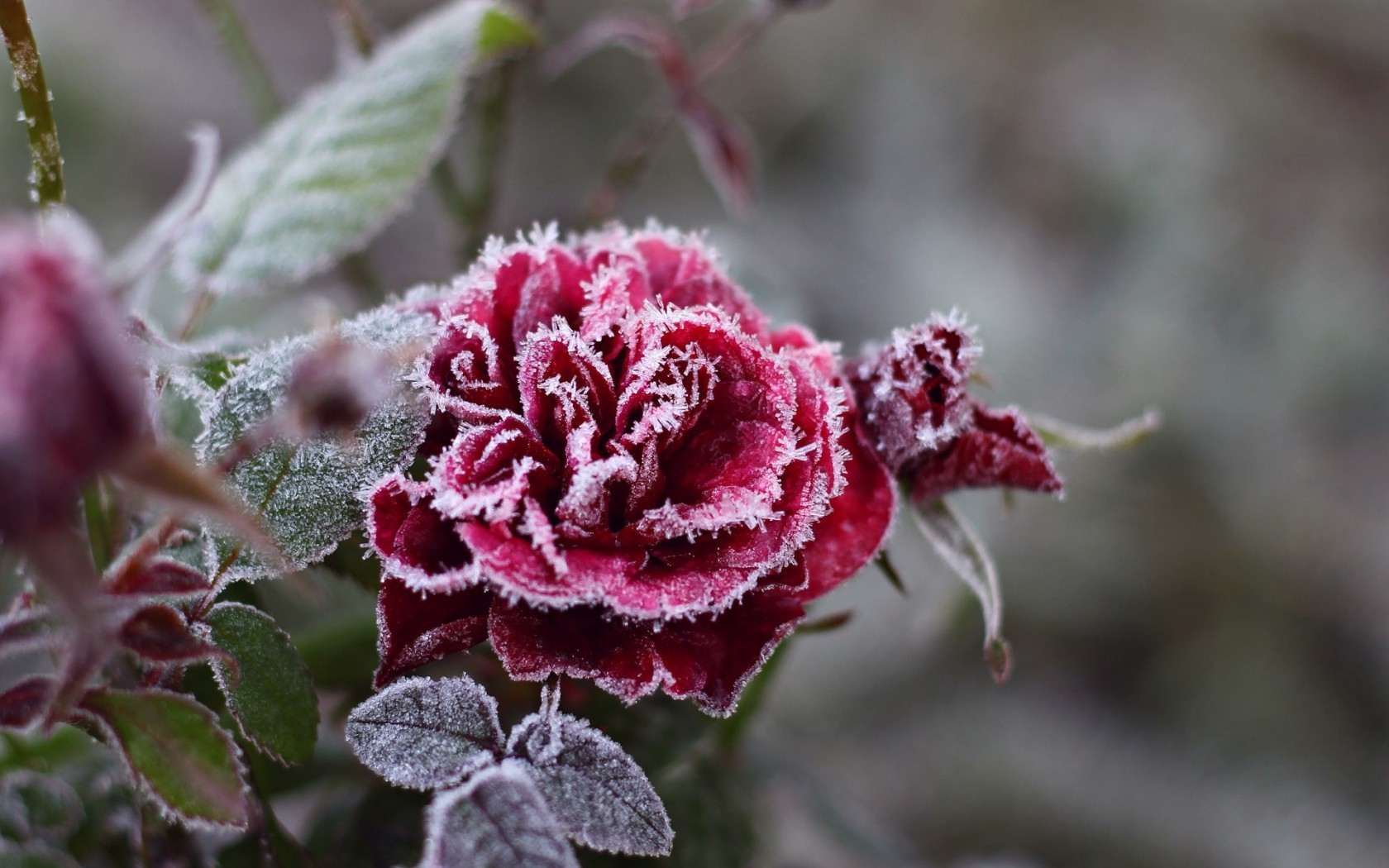 Macro d'un bourgeon de rose écarlate avec des gouttes d'eau