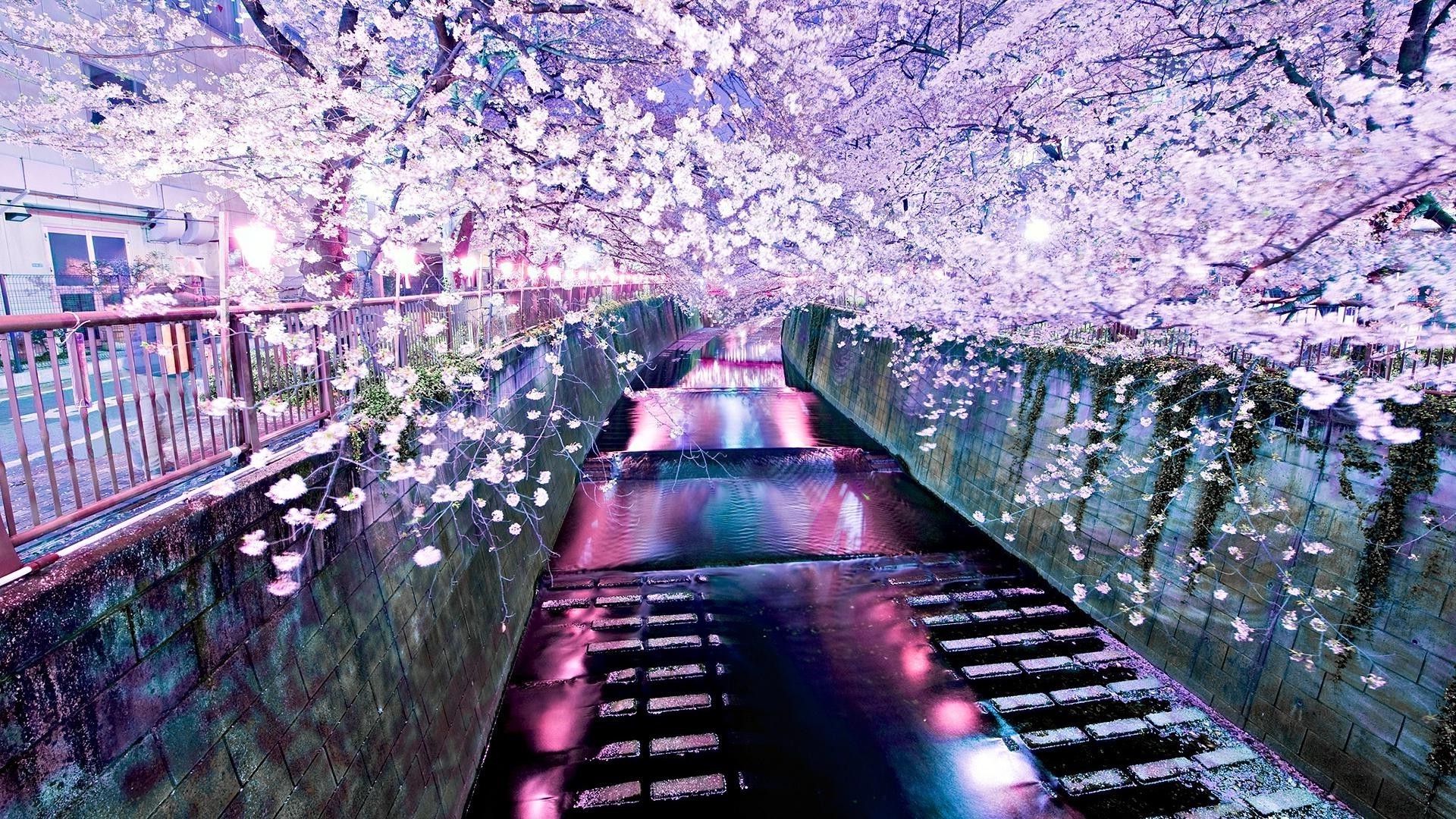 Coucher de soleil rose et orange avec des arbres au premier plan