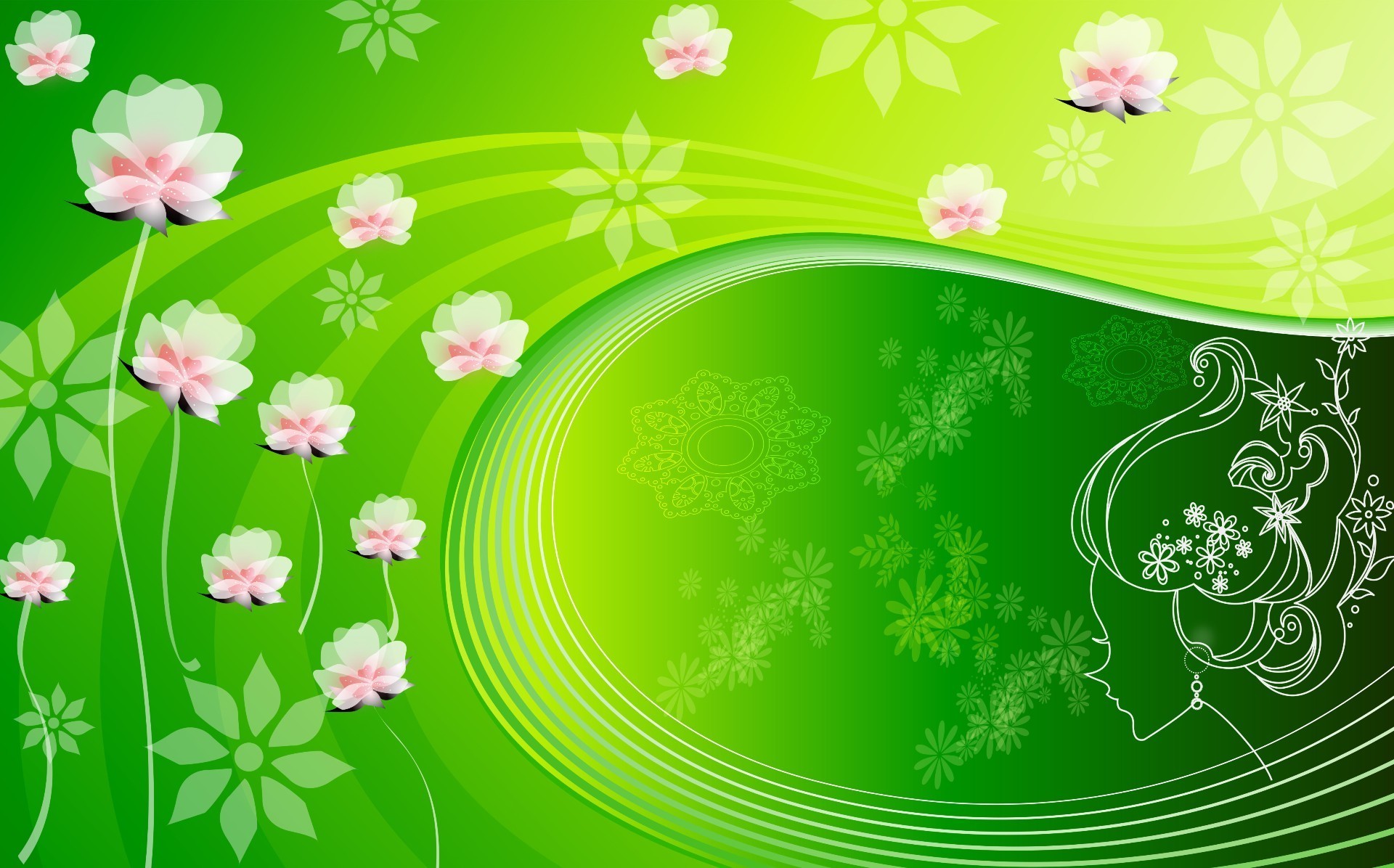 Image vert clair avec des fleurs roses
