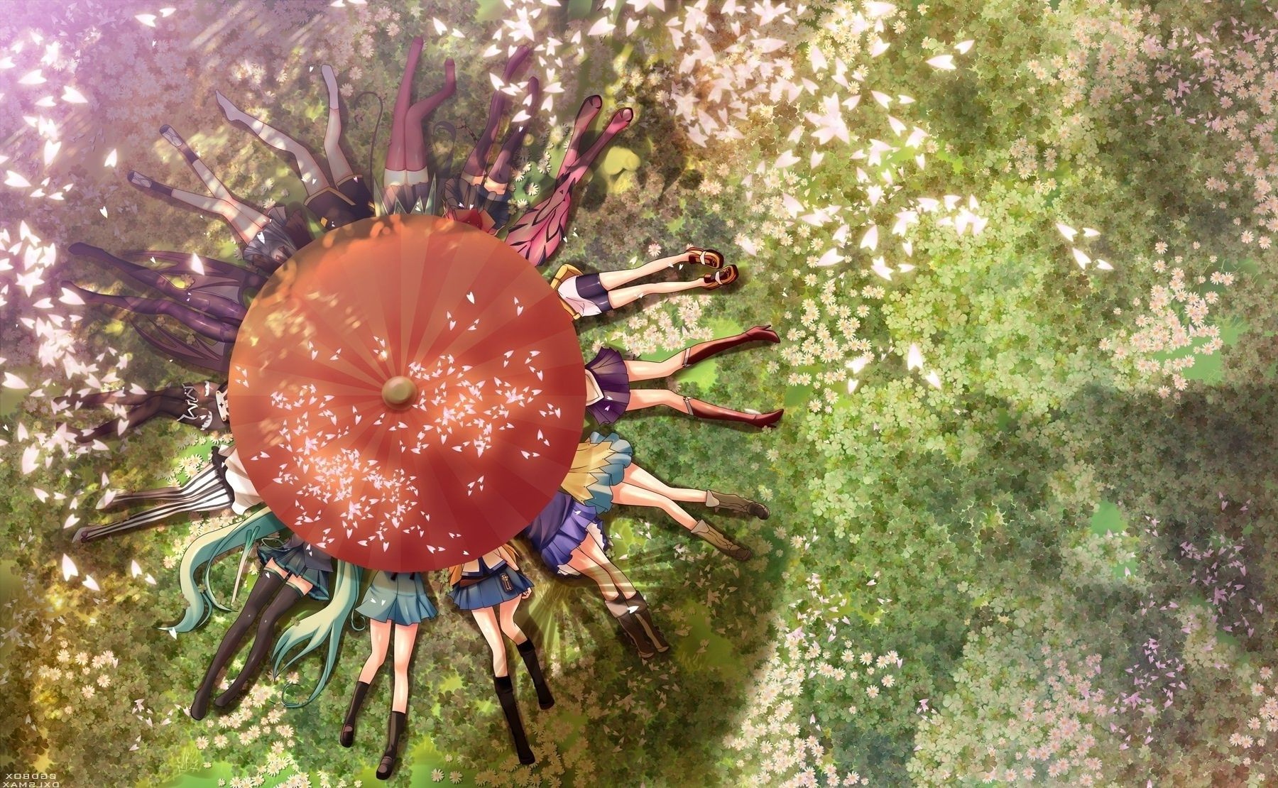 Heroes rouge parapluie glade fleurs jambes héroïne anime