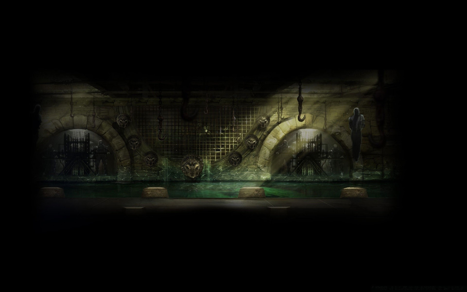 Quatre hommes et une fille dans une ruelle sombre