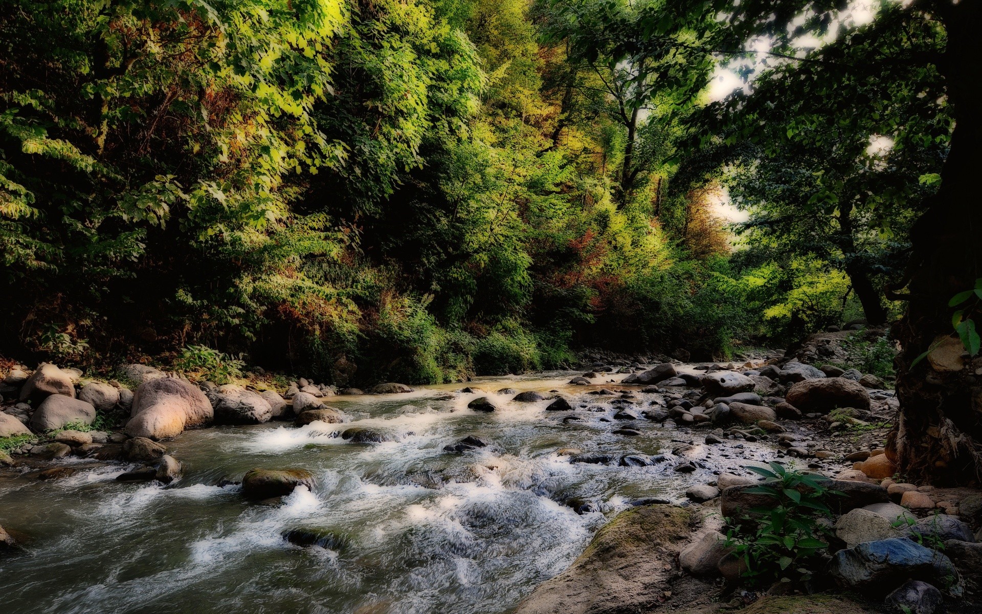 Fond d'écran avec l'image de l'année de la nature du ruisseau et de la pierre
