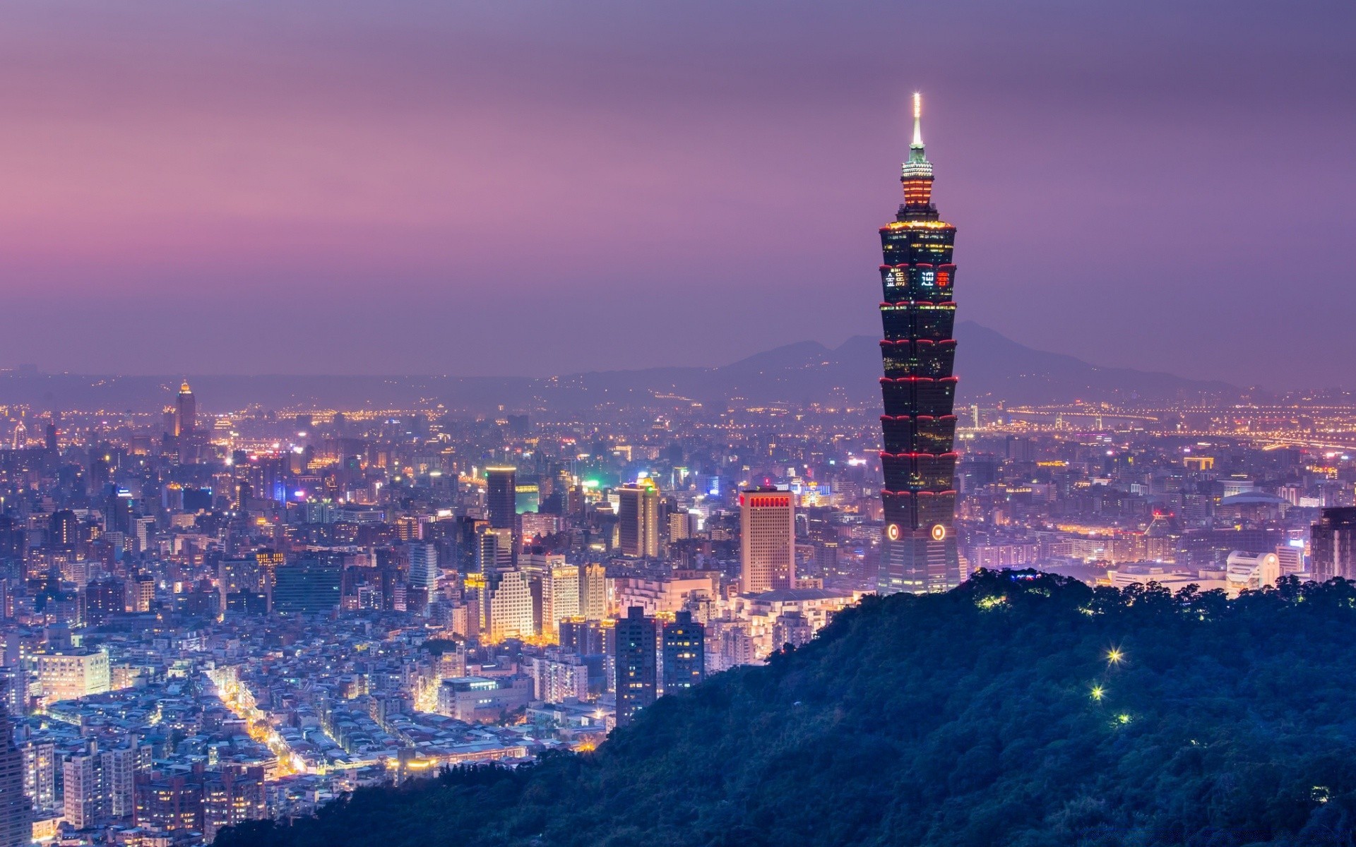 Une petite ville asiatique près des montagnes est éclairée par des lumières nocturnes