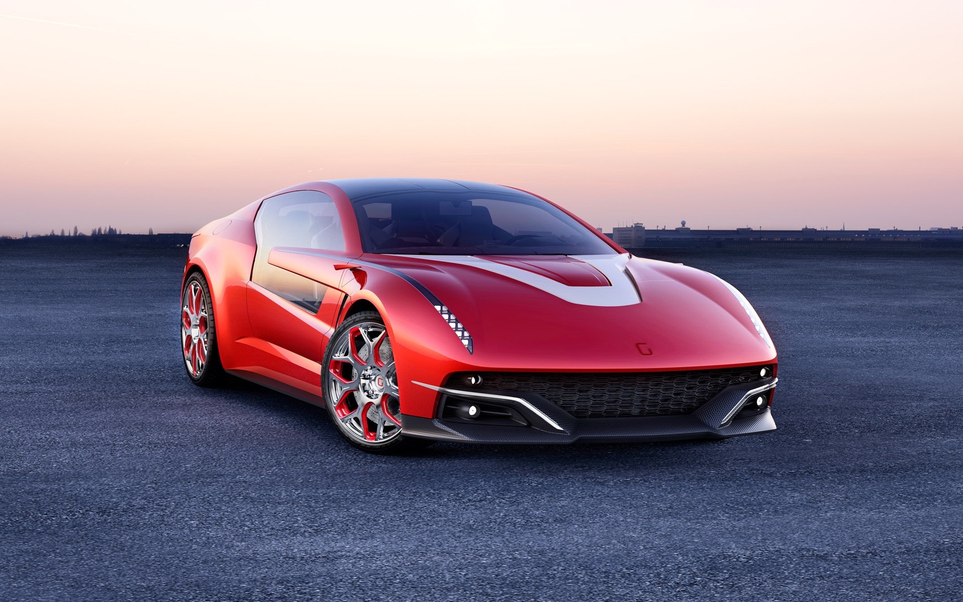 Voiture de course rouge se trouve à l'intérieur sous les lampes