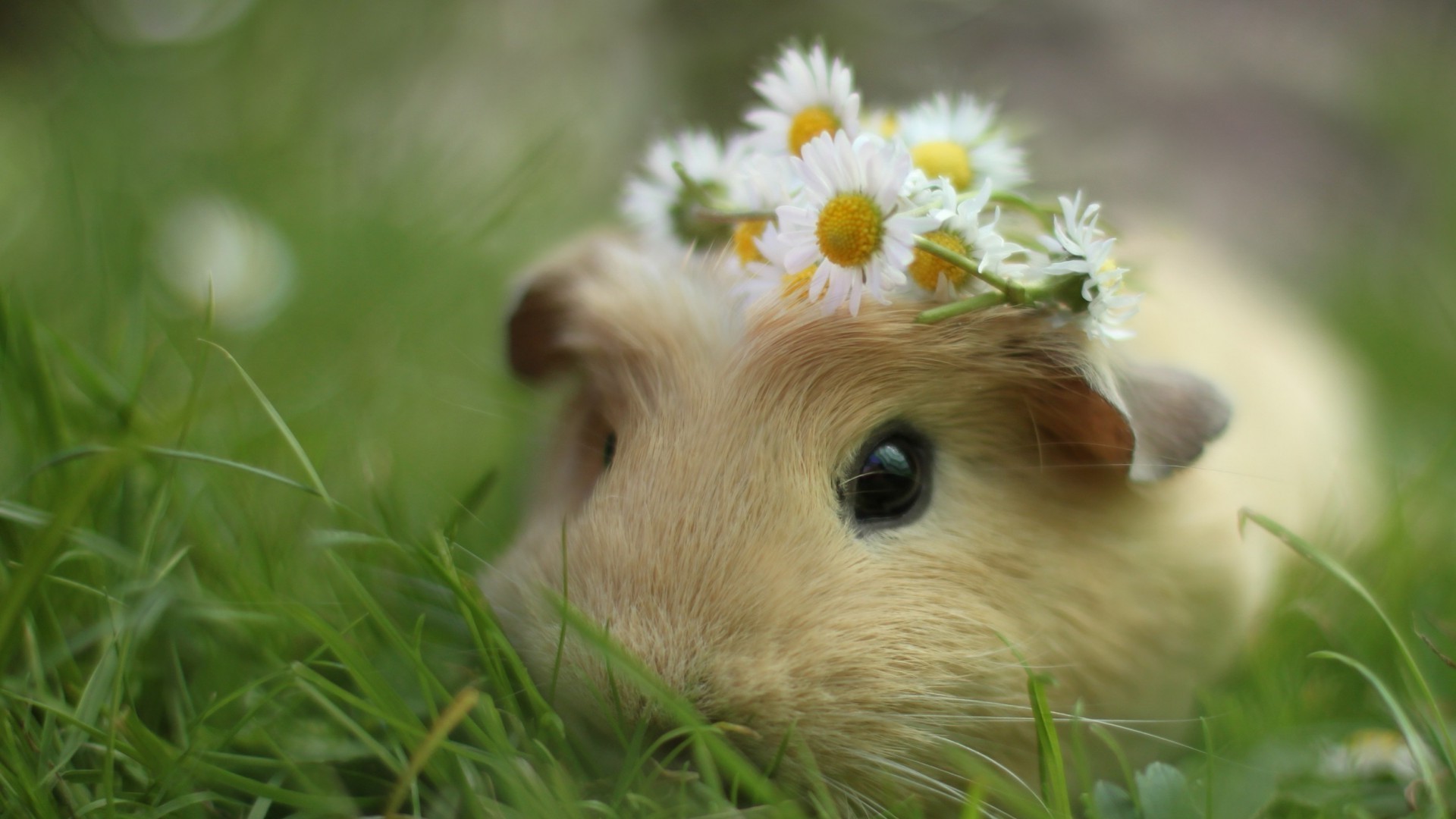 Cochon d'Inde avec un cerceau de fleurs sur la tête