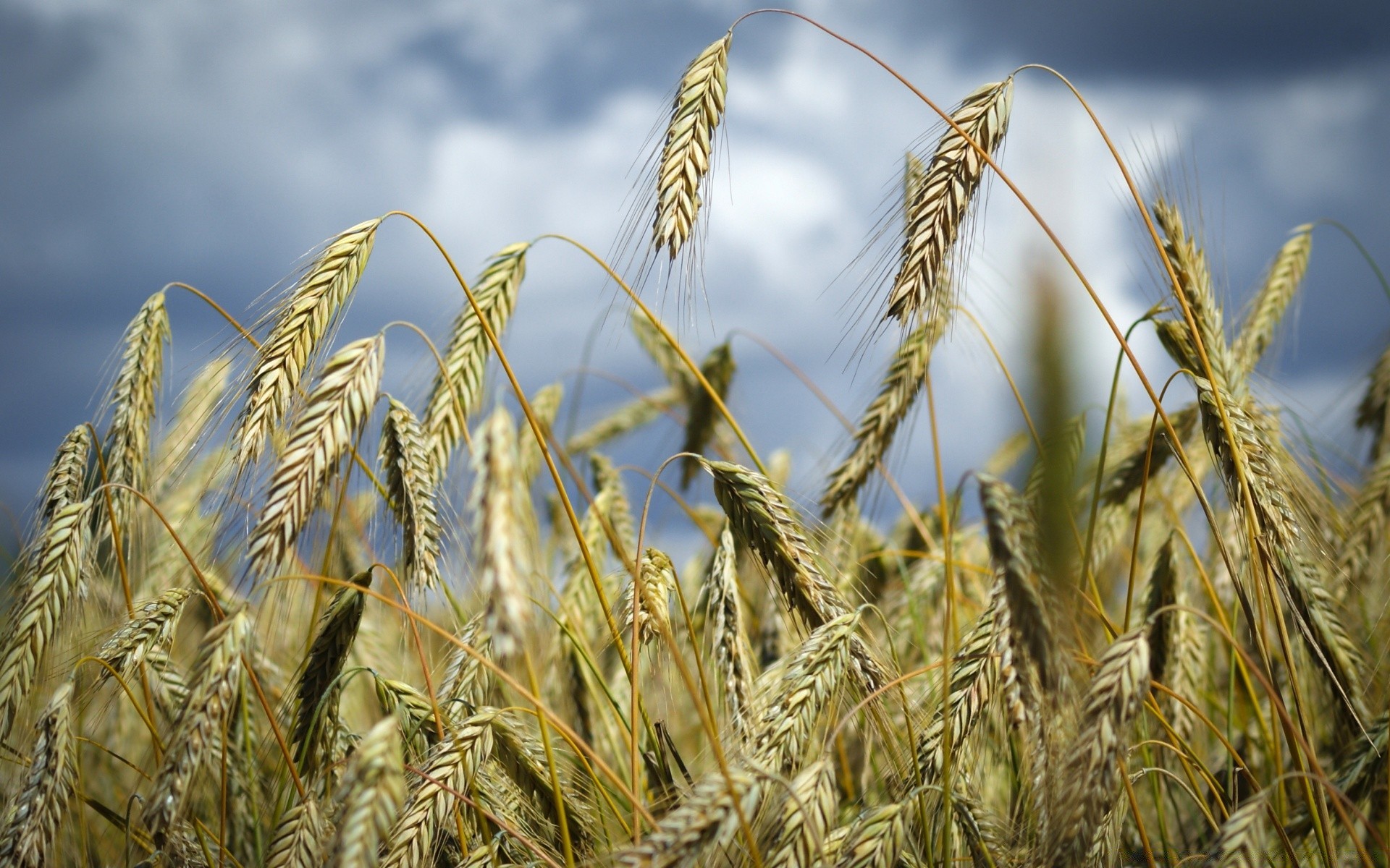 Champ de blé prêt pour la récolte dans le ciel bleu