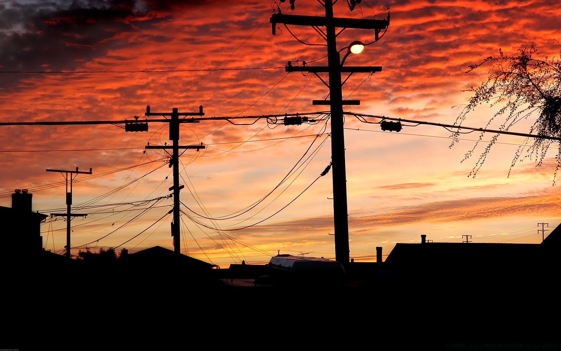 Fils électriques avec poteaux