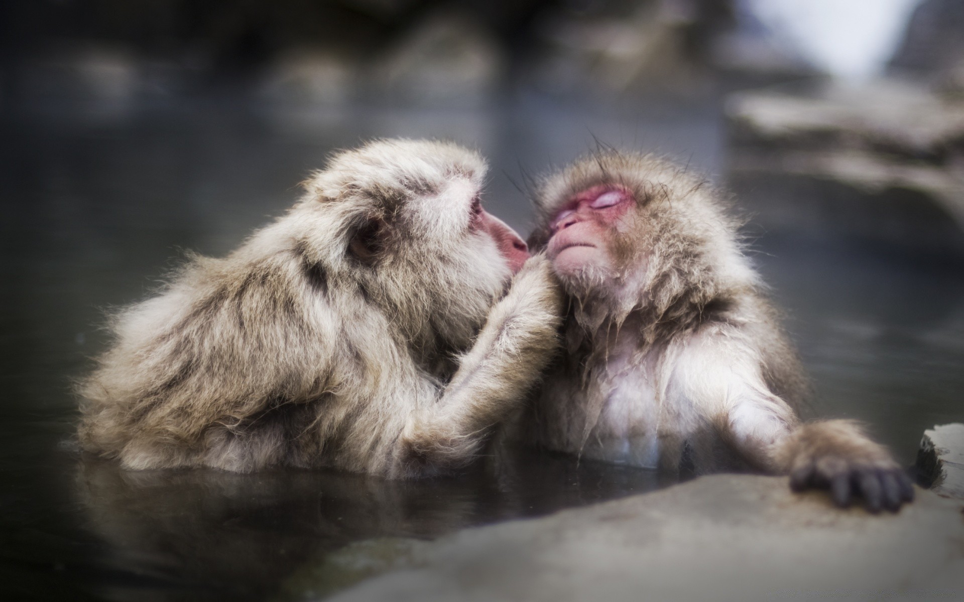 Deux singes se lavent dans l'eau
