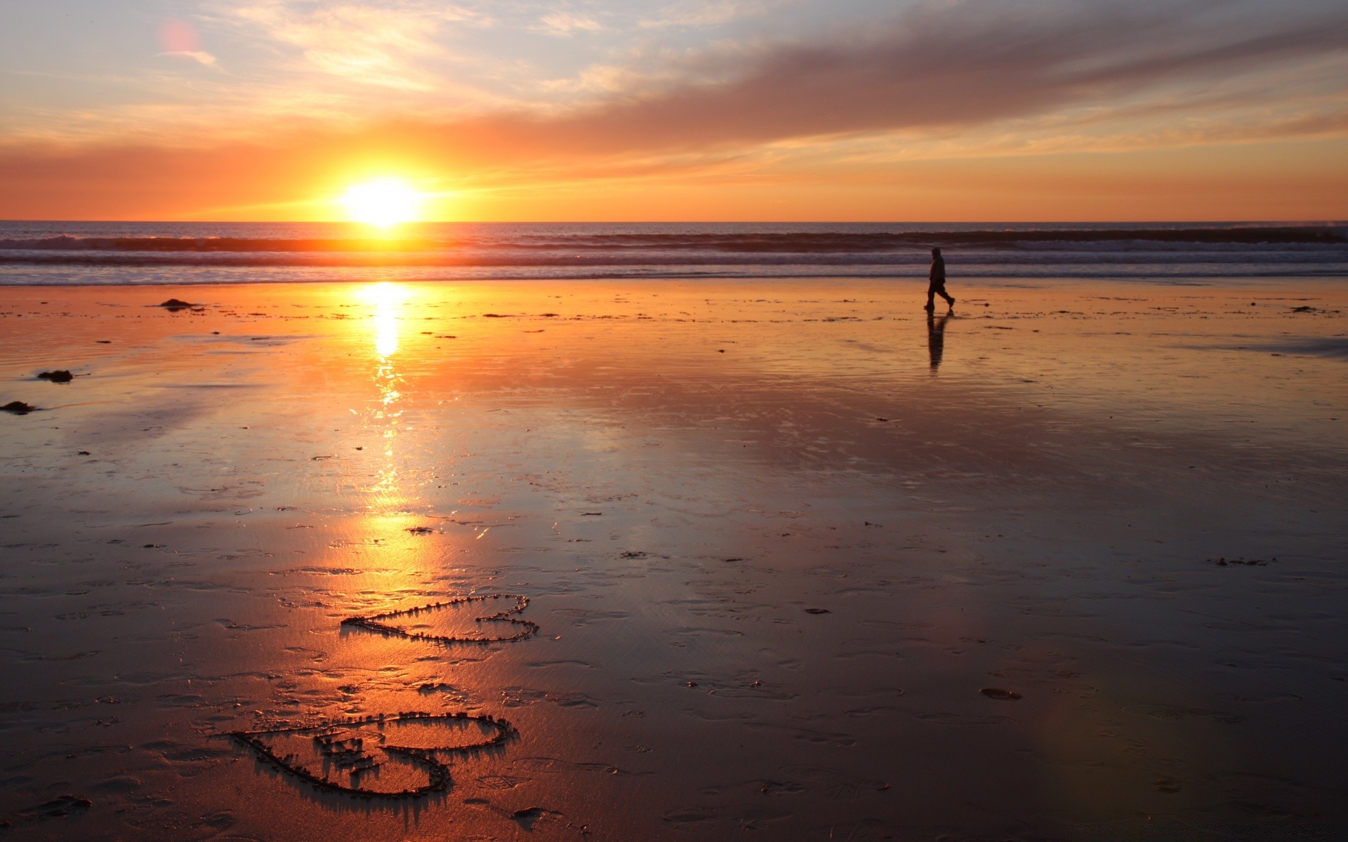 Coucher de soleil ou l'aube avec des coeurs illuminés
