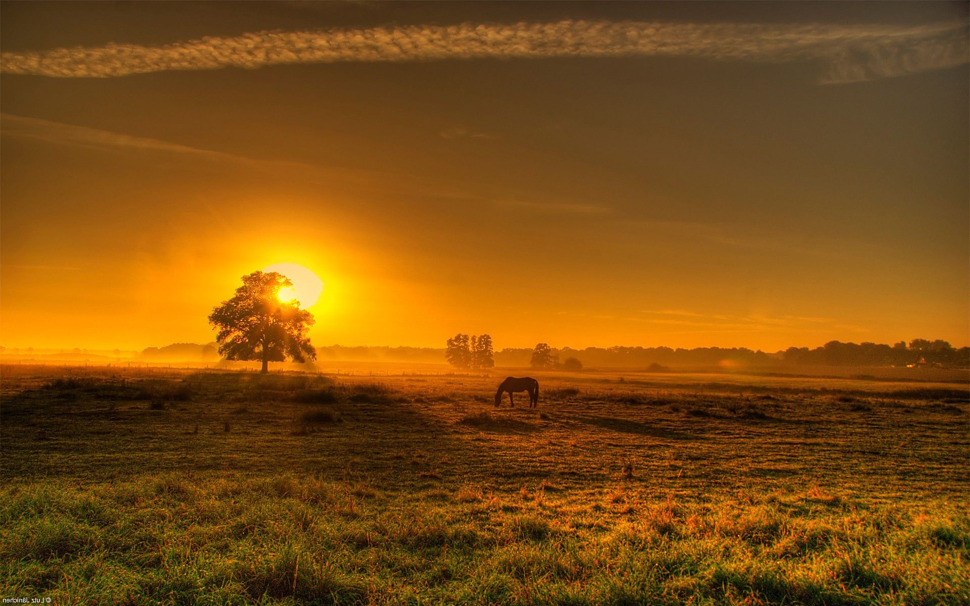 Coucher de soleil au bord du lac dans les tons arc-en-ciel
