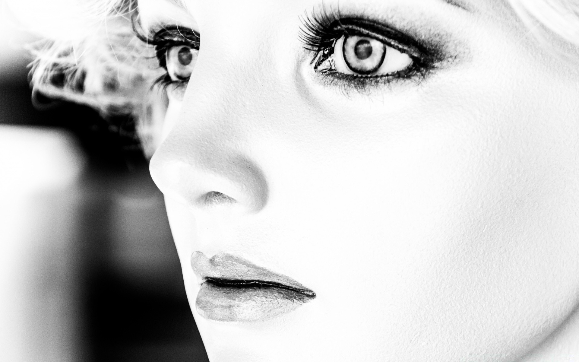 Visage d'ange sur fond de pierre noir et blanc