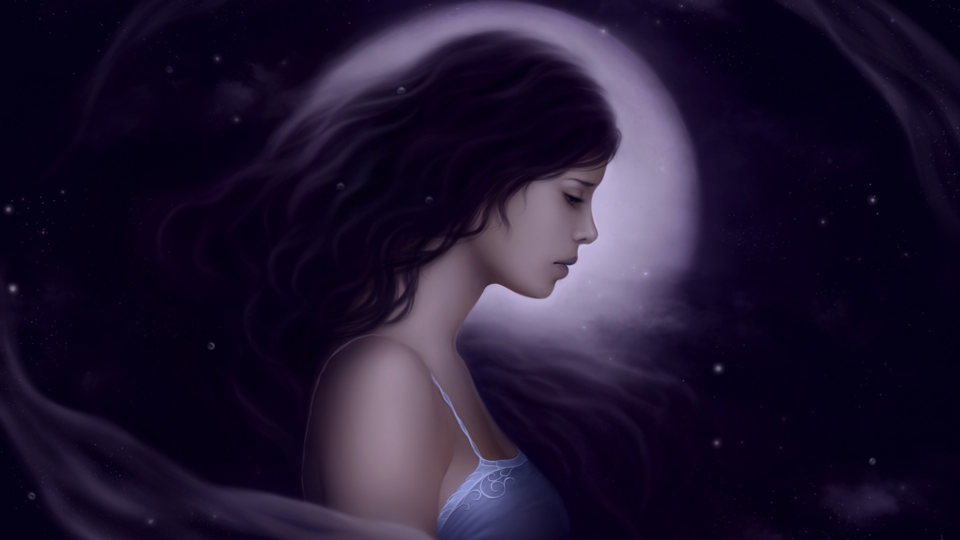 Fille dans une robe à pois, assis sur l'herbe sous un grand parapluie lumineux
