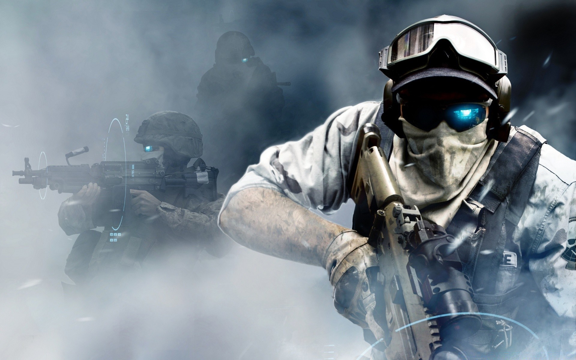 SWAT Squad Ghosts portant un casque avec un déterminant de la cible au combat et de la fumée