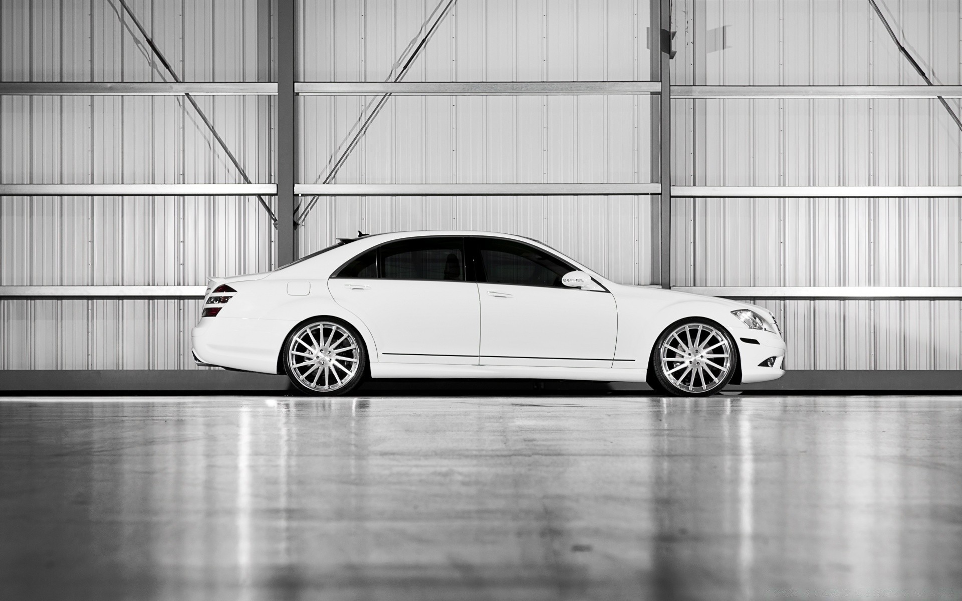Voiture blanche dans le garage blanc