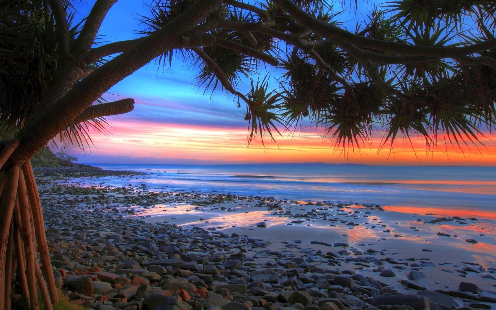 Coucher de soleil sur la plage avec plante exotiqueCoucher de soleil sur la plage avec plante exotique