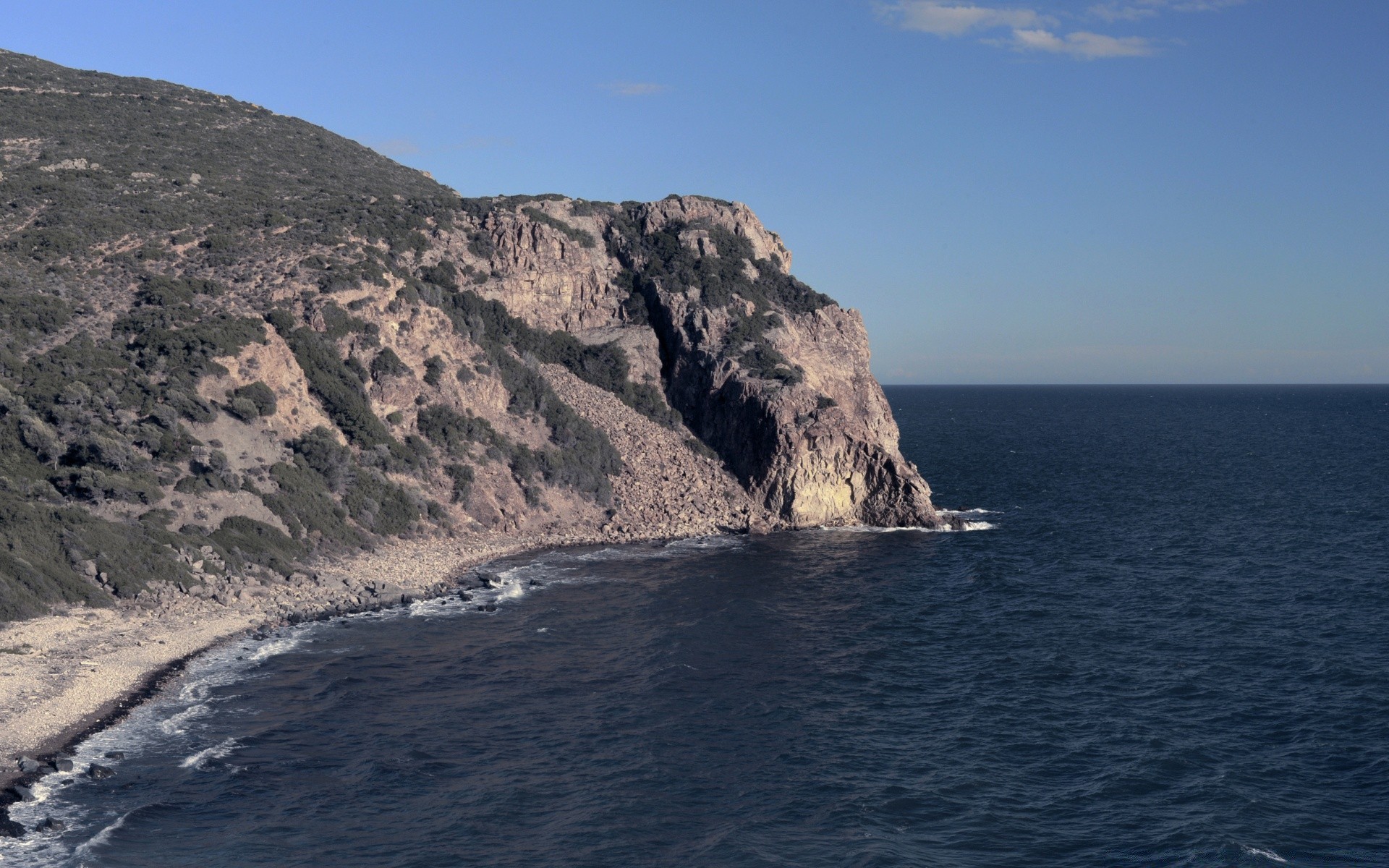 Coucher de soleil orange sur la côte rocheuse de la mer