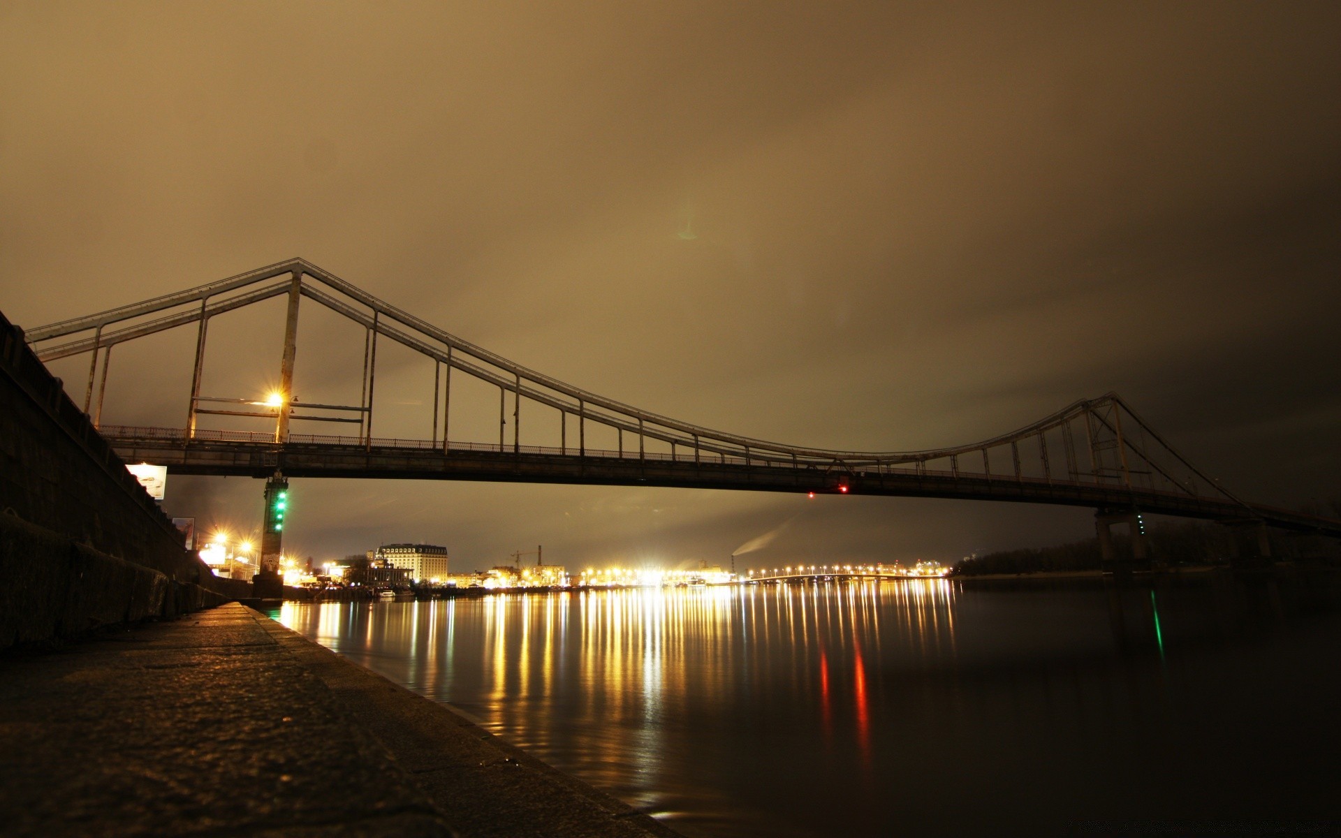 Coucher de soleil sombre sur le pont lumineux