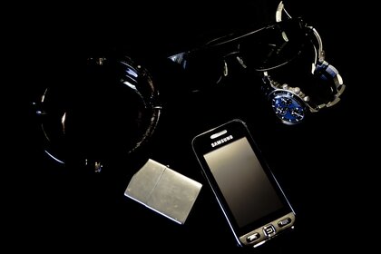 Téléphone et accessoires sur fond noir