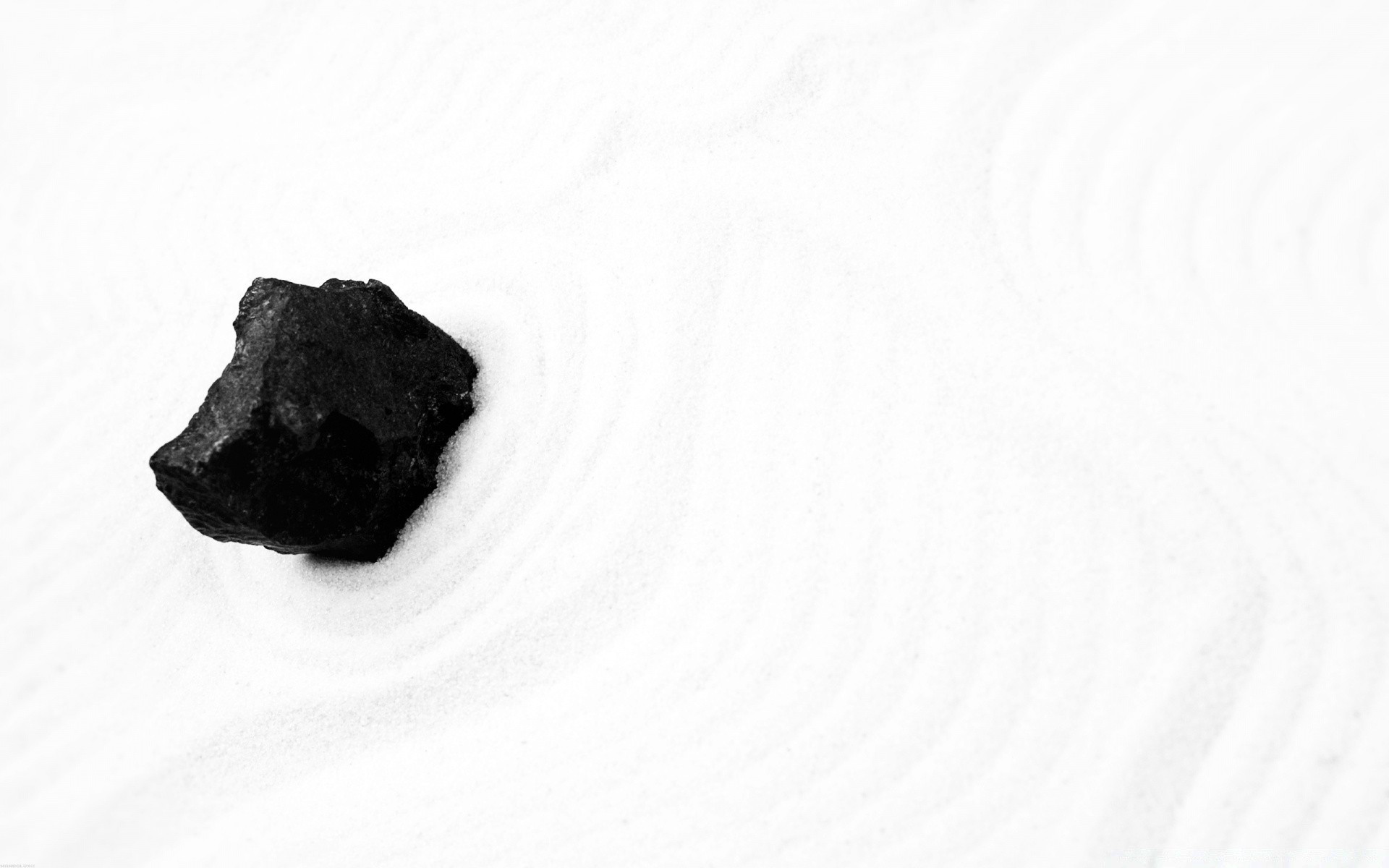 Pierre noire sur sable blanc