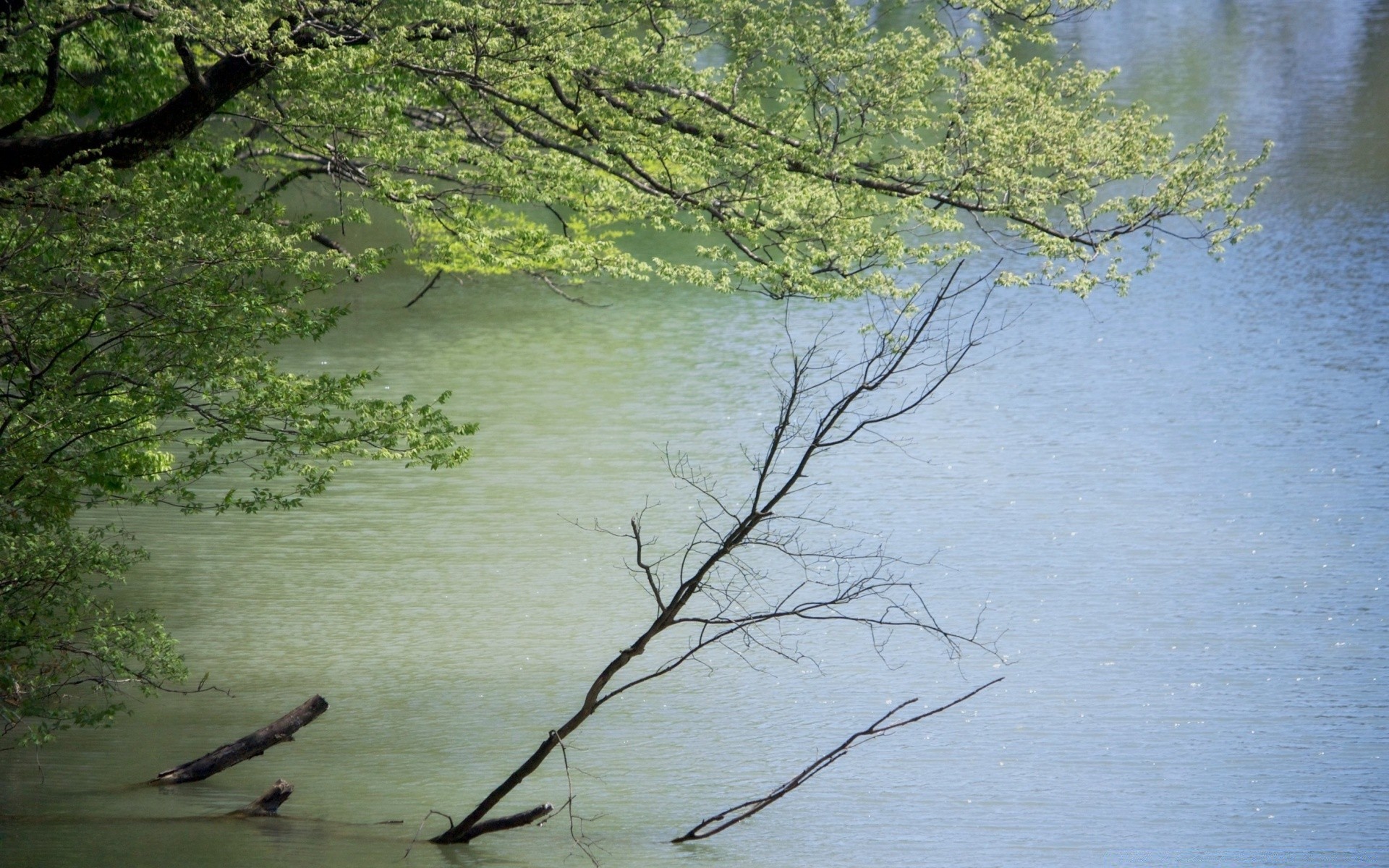 La chute des rayons du soleil sur la forêt et l'étangLa chute des rayons du soleil sur la forêt et l'étang