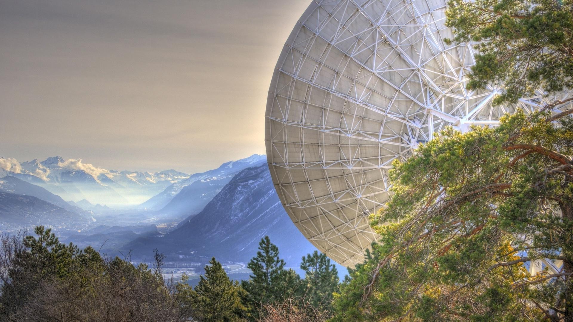 Paysage avec Observatoire sur fond de montagnes et de ciel